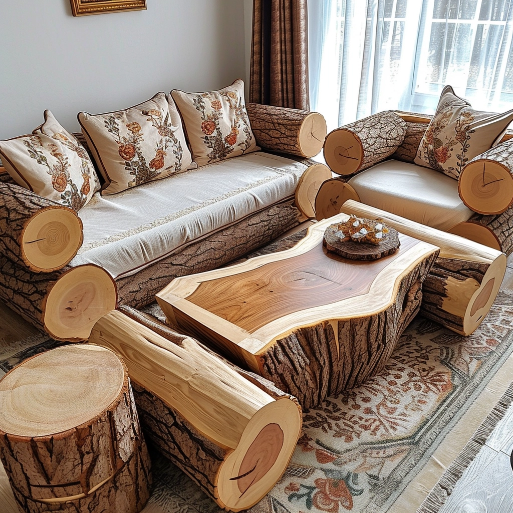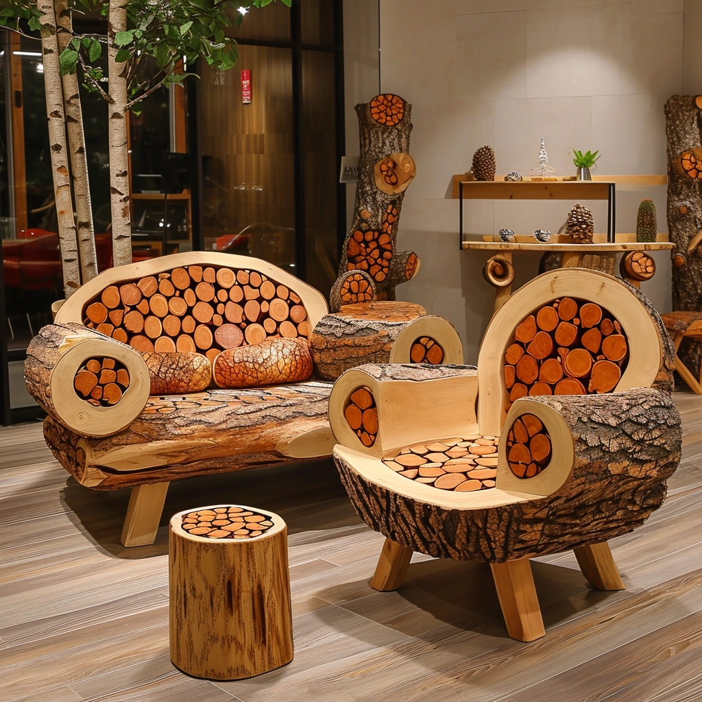 Convertible Comfort: Dive into the realm of practical versatility with a wood log couch set that seamlessly combines rustic charm with convertible comfort. This innovative design not only redefines the conventional notion of seating but also introduces an adaptable element that aligns with the dynamic needs of modern living. Picture a log daybed or a sectional with modular components, providing the freedom to rearrange the furniture to suit diverse occasions and spatial configurations. The transformative nature of convertible comfort not only enhances the practicality of the wood log couch set but also invites a sense of creative freedom, enabling inhabitants to curate their living space according to evolving preferences. It’s not merely a couch; it’s an invitation to shape your environment in harmony with the ebb and flow of daily life, offering both comfort and flexibility in a seamlessly integrated design.